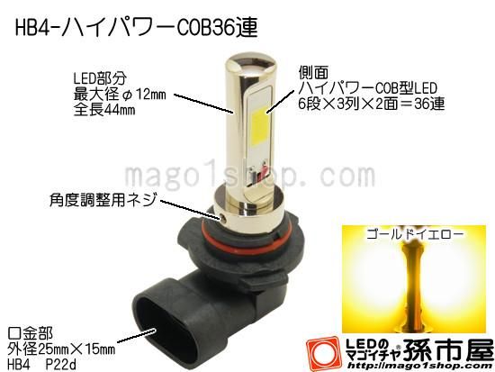 H8/H9/H11/H16兼用-ハイパワーCOB36連-ゴールドイエロー